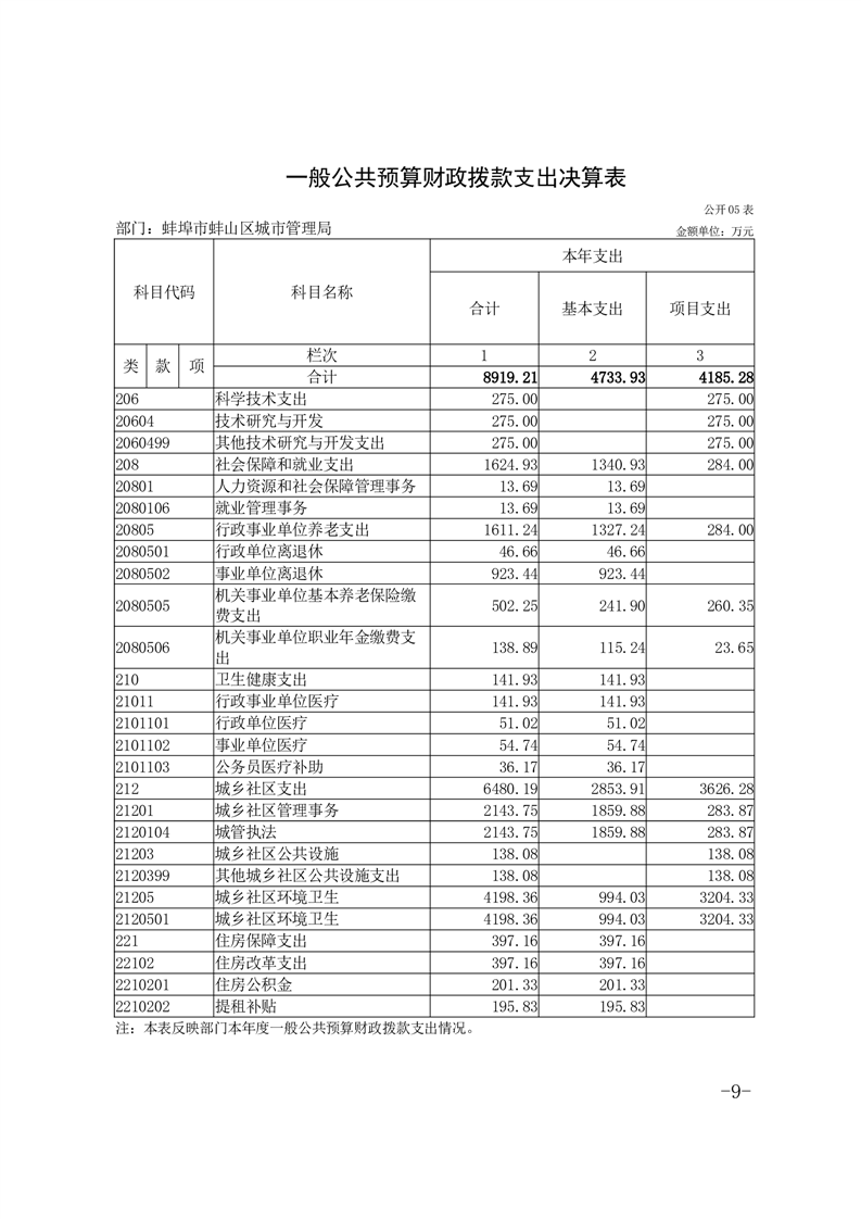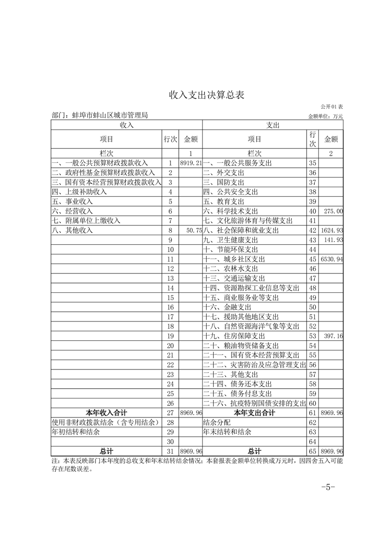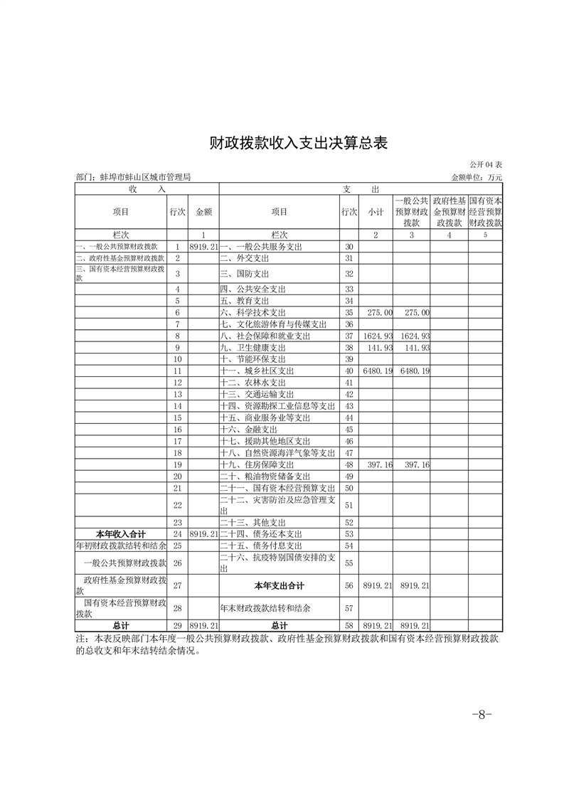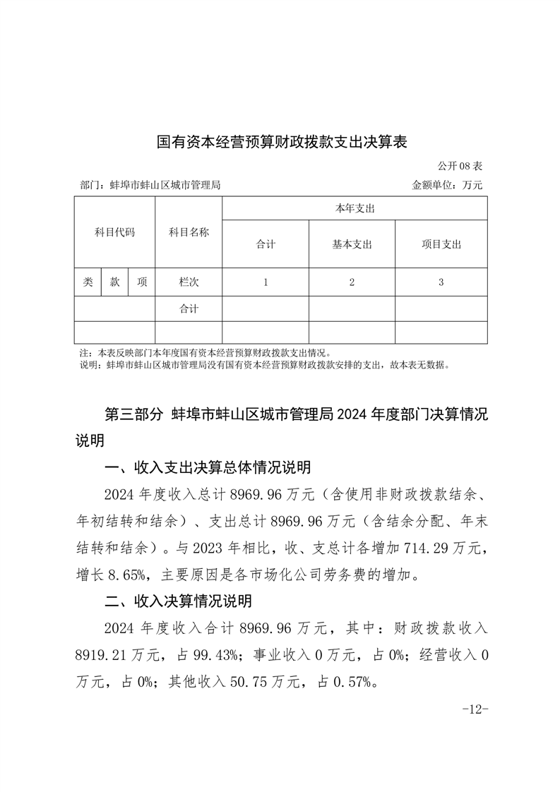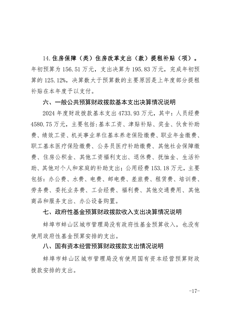 蚌埠市蚌山区城市管理局2024年度部门决算