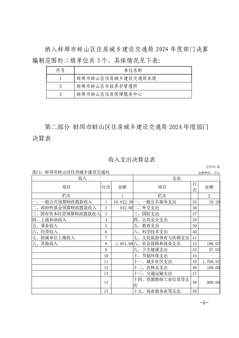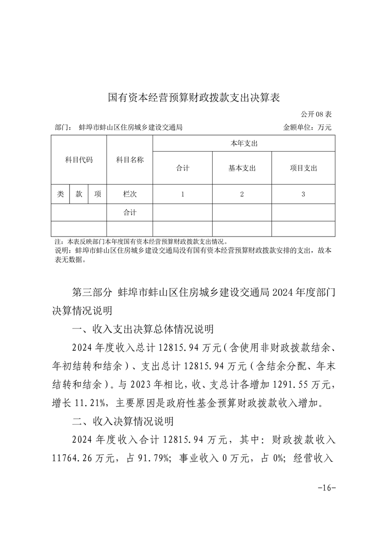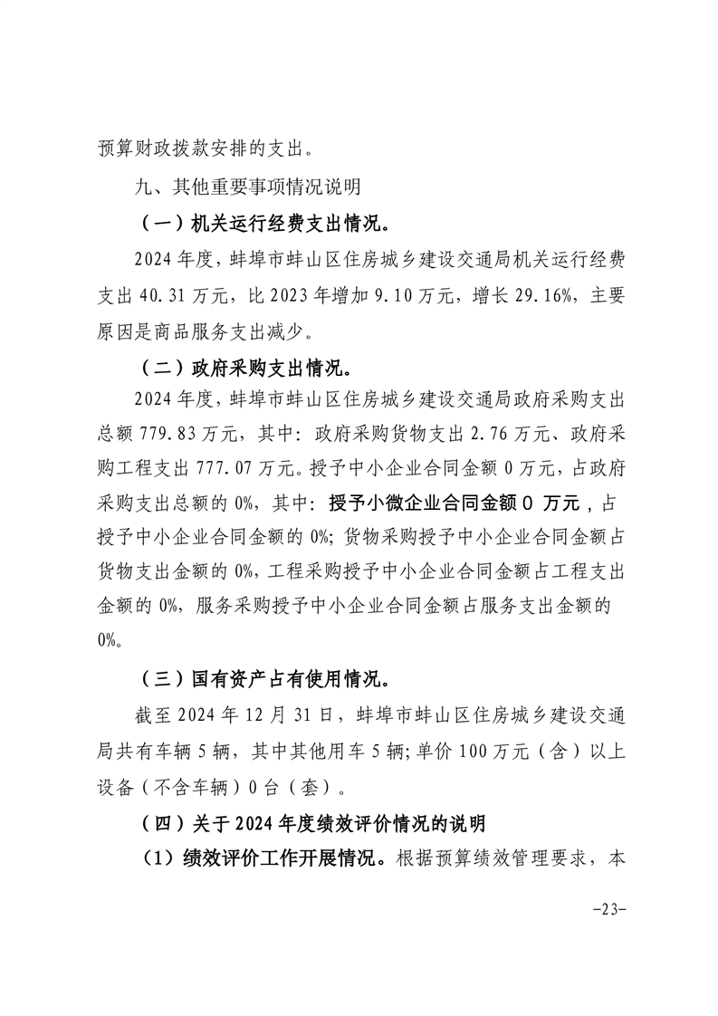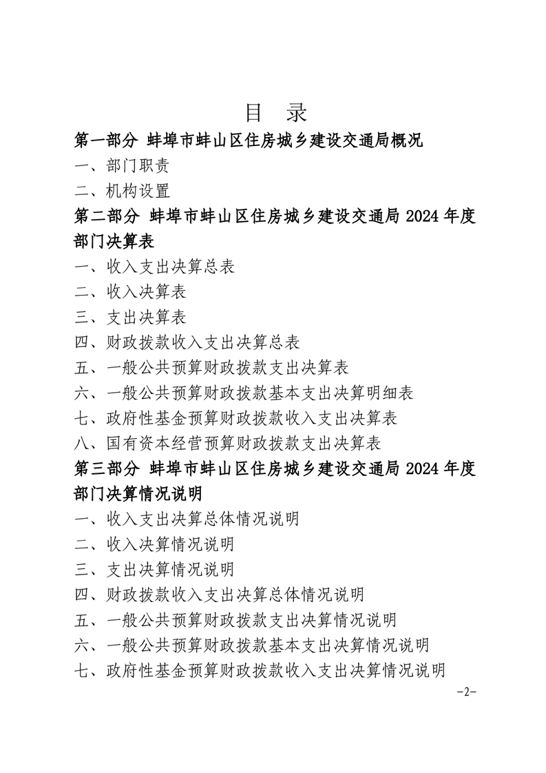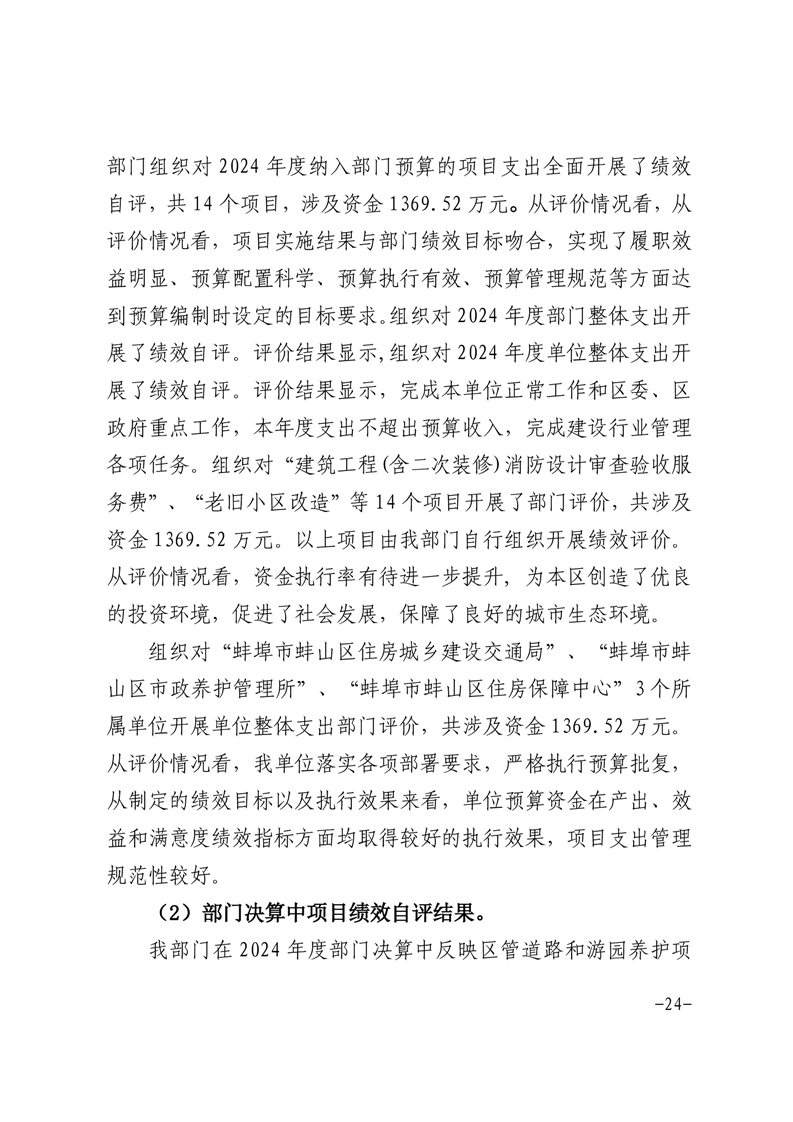 蚌埠市蚌山区住房城乡建设交通局2024年度部门决算