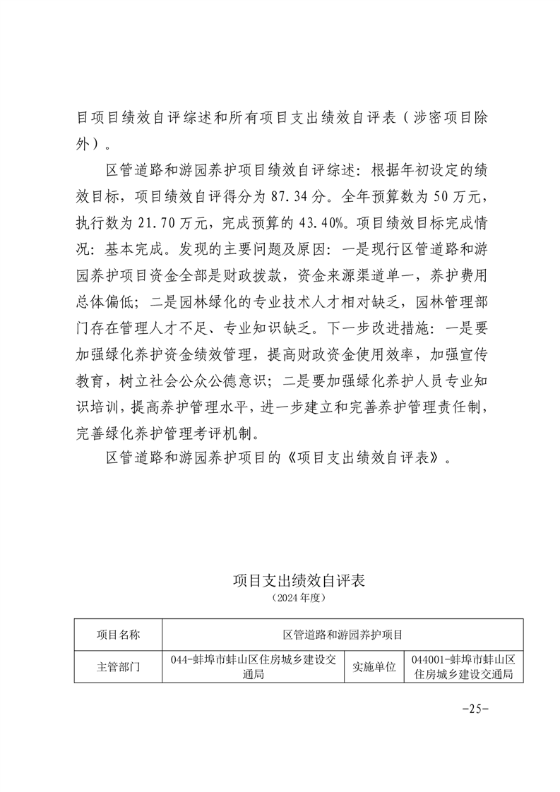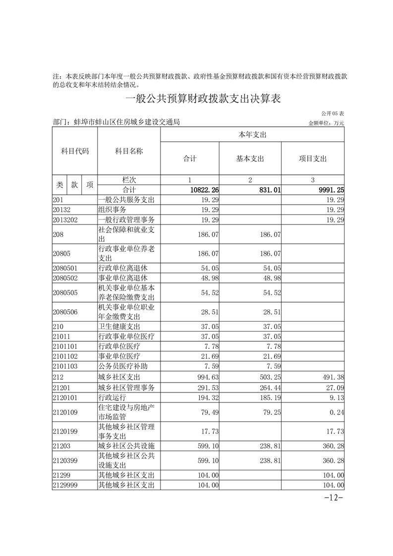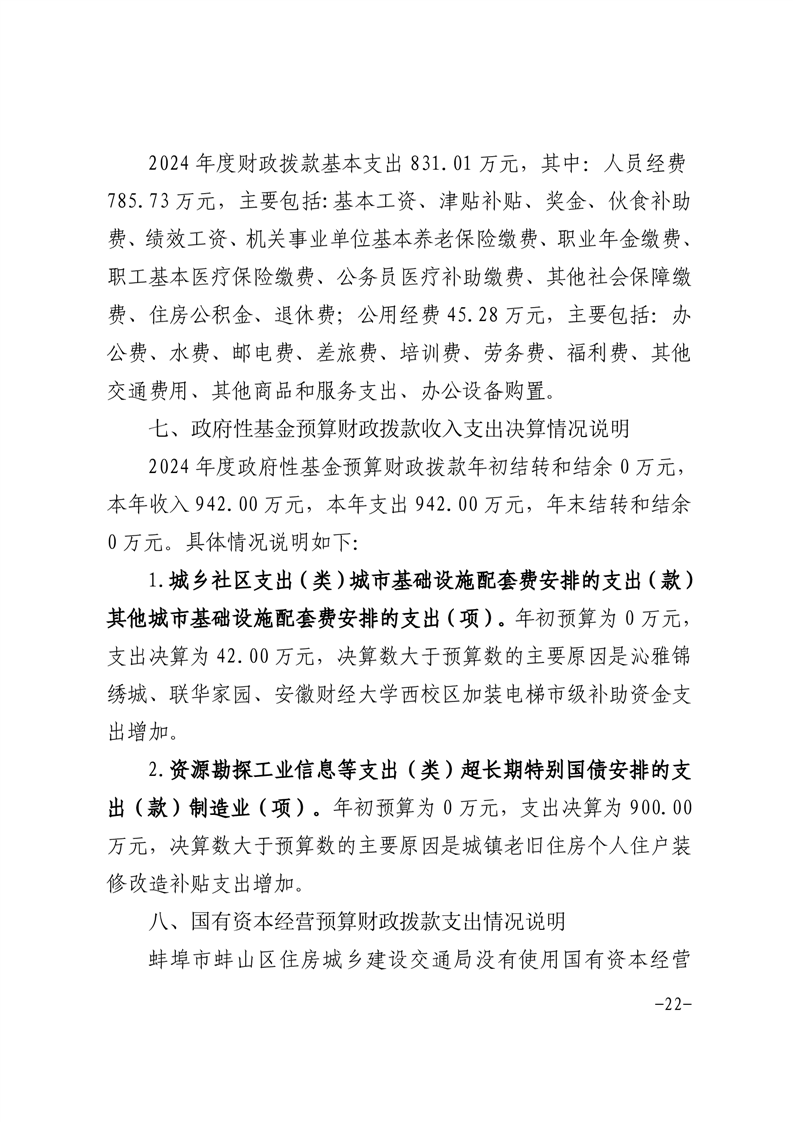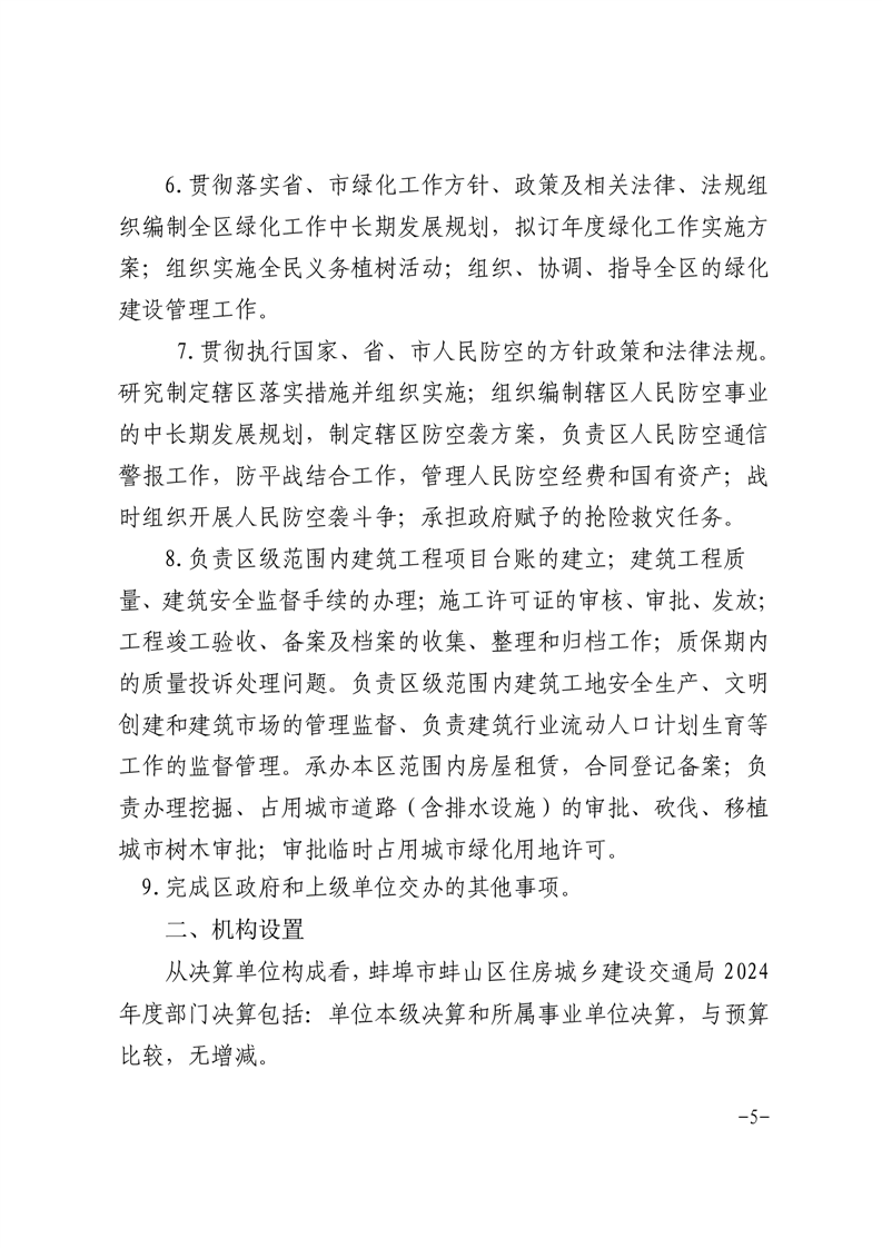 蚌埠市蚌山区住房城乡建设交通局2024年度部门决算