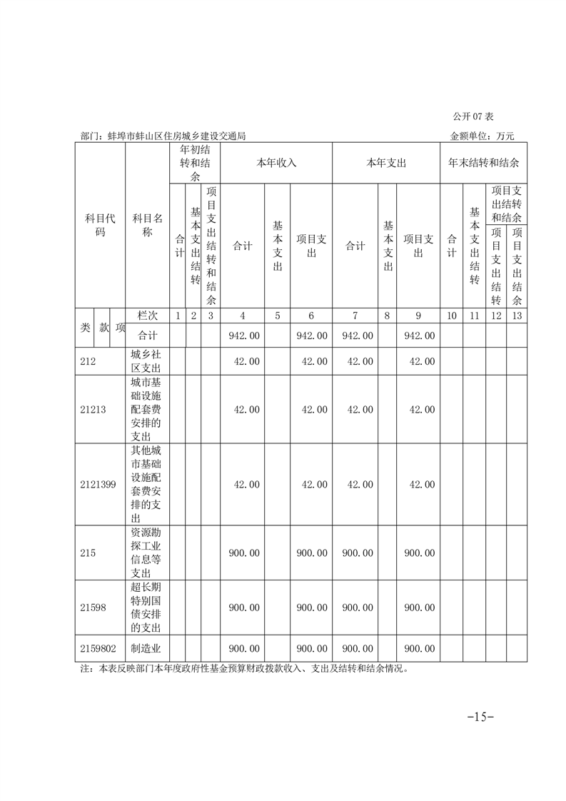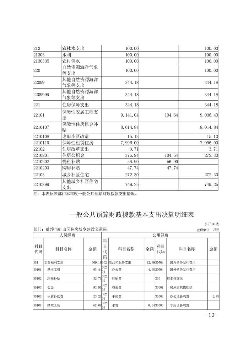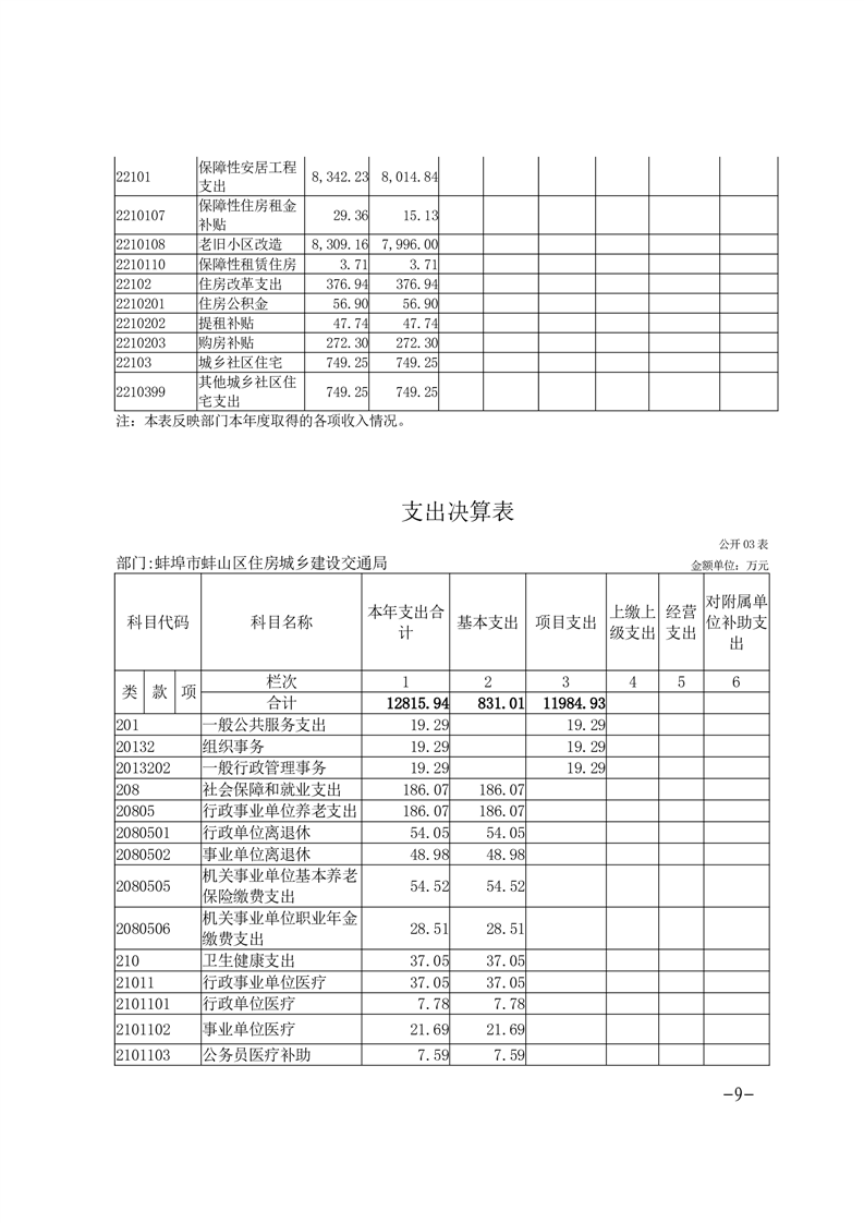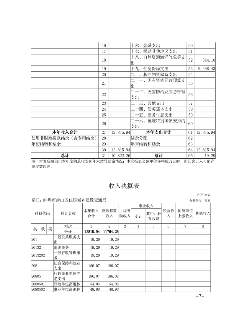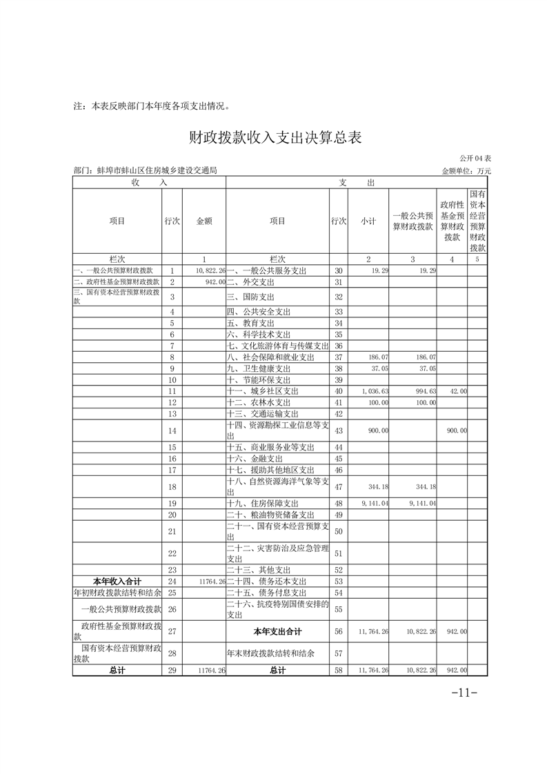 蚌埠市蚌山区住房城乡建设交通局2024年度部门决算