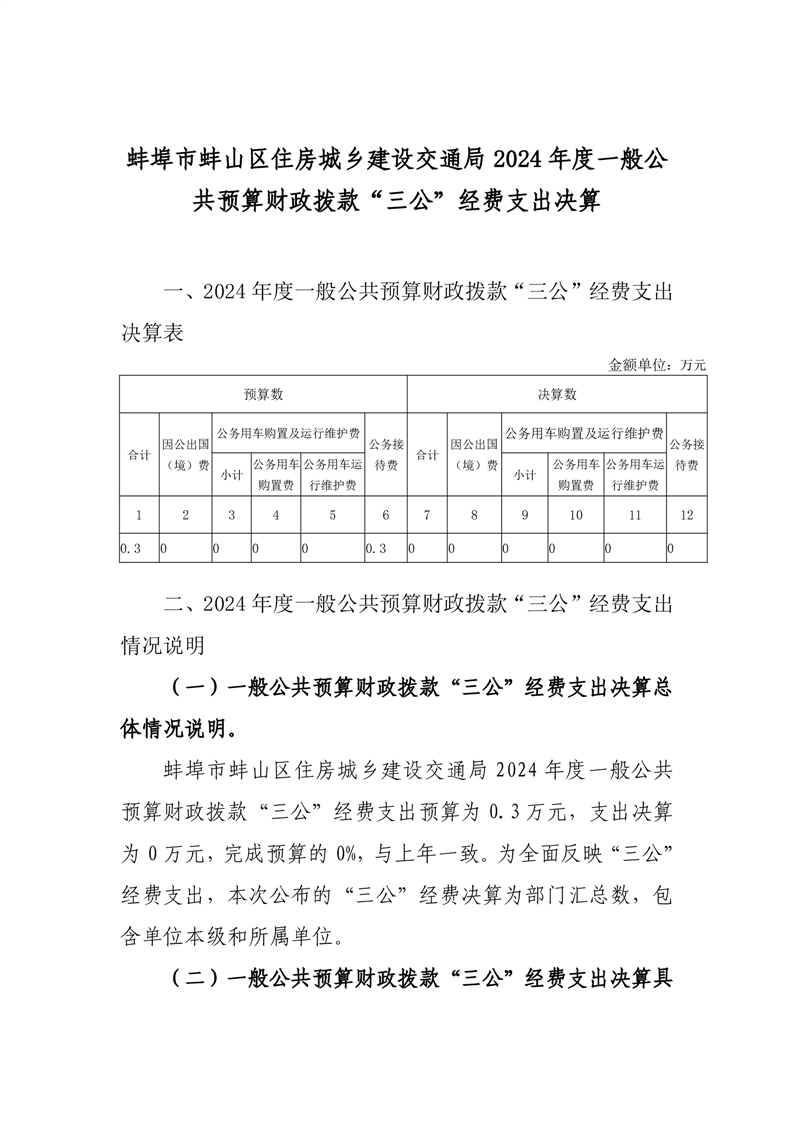 蚌埠市蚌山区住房城乡建设交通局2024年度一般公共预算财政拨款“三公”经费支出决算